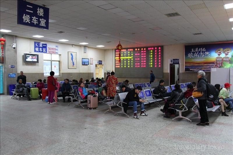 ちなみに、大理~麗江への列車は一日に8本あって、早朝から夕方まで数時間おきにあるんですが、何故か9時15分発の次は15時30分と6時間以上の時間が空いてしまうので注意が必要です。