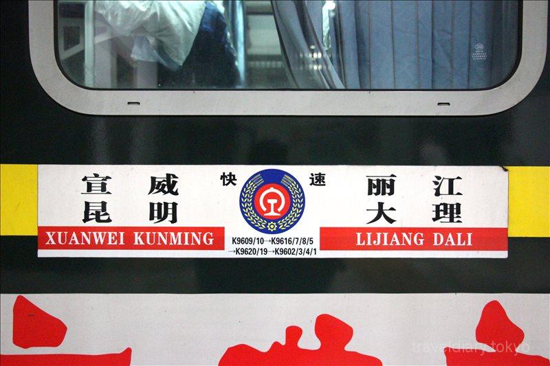 ↓ 私が乗ったのはこの列車。快速です。麗江から大理を経由して昆明まで行くみたい。途中で宣威という所も通るのでしょうか。たぶん、他の駅にも停車するんだと思います。