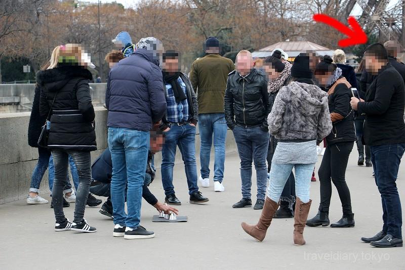 エッフェル塔に向かってイエナ橋を渡っていた時に、橋の途中に人だかりが。