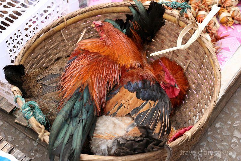 ↓ どこの市場でも売っていますが、鶏も生きたまま販売中。鮮度は最高ですね。。