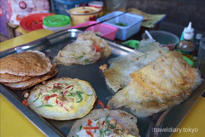 昼食を食べてから1時間も経っていないんですが、道端でお好み焼きのような卵焼きのような、、、何か謎の食べ物を売っていたので立ち寄ってみました。