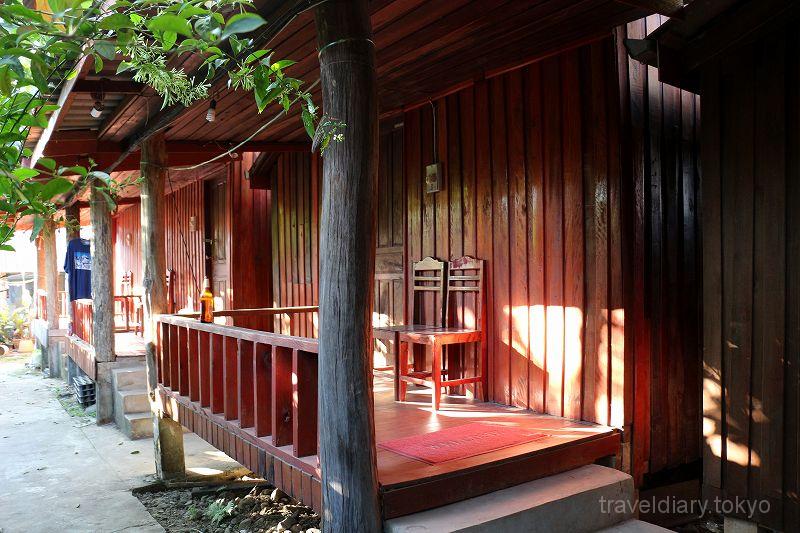 木で囲われただけの質素な部屋で、ルアンナムターで宿泊した「マニーチャン ゲストハウス」と雰囲気は似ていましたが、こちらは各棟が少し離れていることもあって隣の声が丸聞こえと言う事はなかったです。