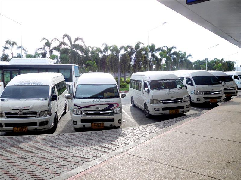 行先によっては空港の前からバスが出ている便もあるんですが、私の目的地のアランヤプラテート行きは公共交通センター(空港バスターミナル)へ移動する必要があり、空港から出ている無料のシャトルバスに乗って向かいました。
