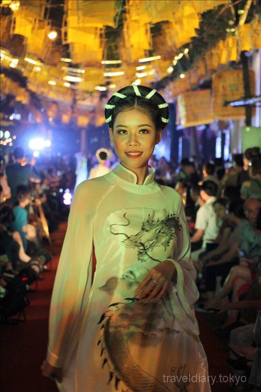 ↓ 道の奥の方で何かイベントをやってるようだったので行ってみたら、一般の道路でファッションショーをやってました。アオザイを着た美女たちが次から次と。